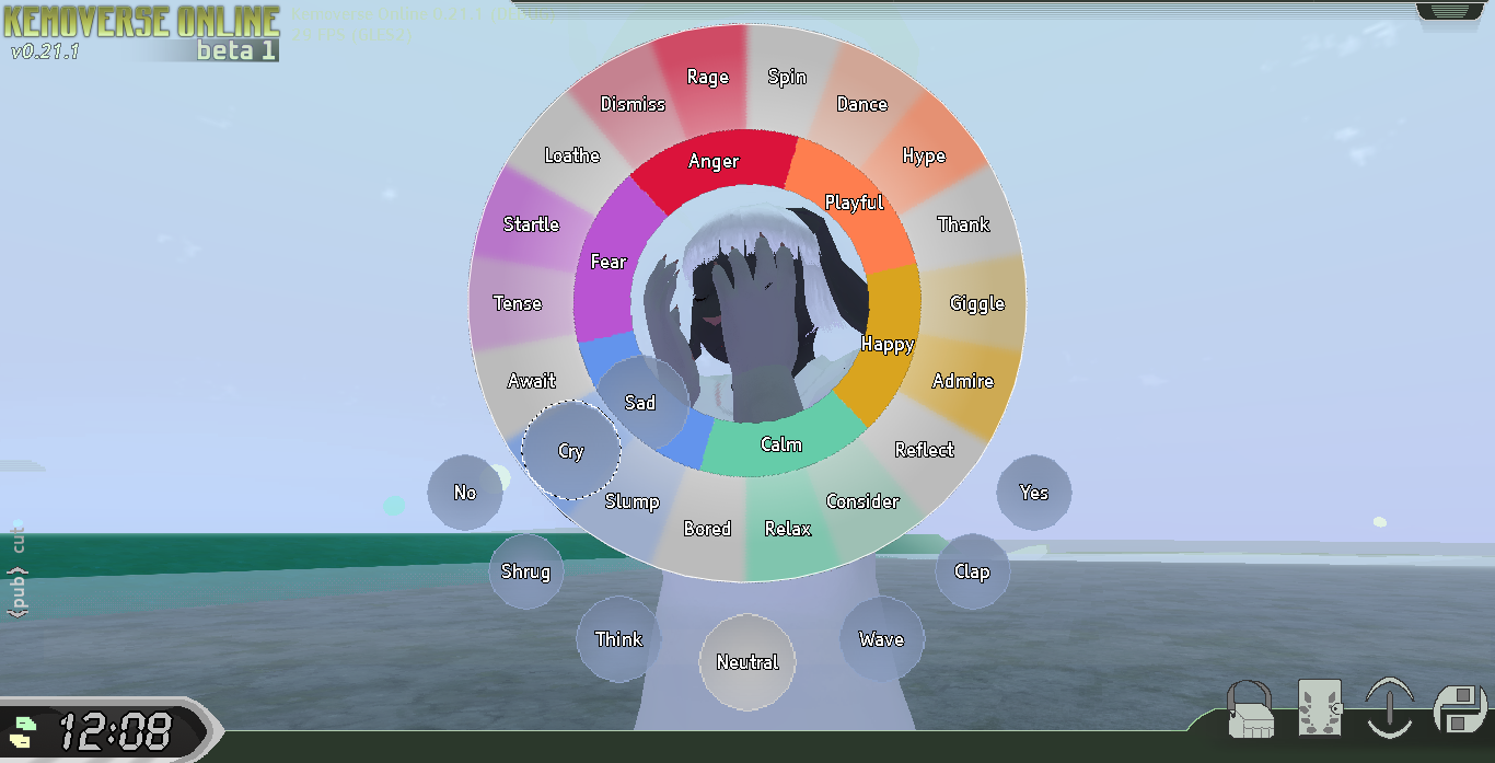 emoter (E) orgamepad RT to bring up the emoter wheel (right image), where you can express emotions to other characters. - Press